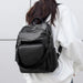 Denna damryggsäck i skinn kombinerar elegans och funktionalitet i en stilren design. Tillverkad av högkvalitativt syntetiskt skinn, ger den ett lyxigt utseende samtidigt som den är slitstark och hållbar. Ryggsäcken har flera fack och dragkedjeförslutningar, vilket gör den perfekt för att organisera dina dagliga tillhörigheter. Den är utrustad med justerbara axelremmar och en avtagbar axelrem, så att du kan bära den både som ryggsäck och axelväska. Perfekt för jobb, resor och vardagsbruk!
