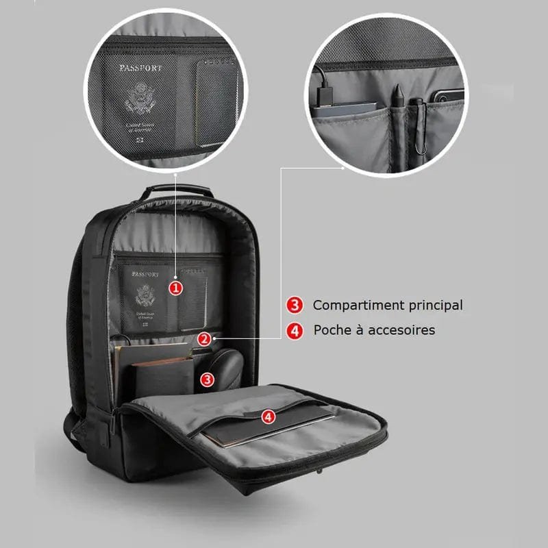 Denna antistöld ryggsäck är designad för att hålla dina värdesaker säkra, samtidigt som den erbjuder stil och funktionalitet. Med dolda dragkedjor och skärsäkert material ger den extra skydd mot stölder, perfekt för pendling och resor. Det vadderade laptopfacket skyddar din dator, medan flera smarta fack hjälper dig att organisera dina tillhörigheter. Dess vattenavvisande material håller dina saker torra även i regn. En inbyggd USB-laddningsport gör det enkelt att ladda mobilen på språng. Elegant, säker och bekväm – den ultimata ryggsäcken för den moderna användaren.