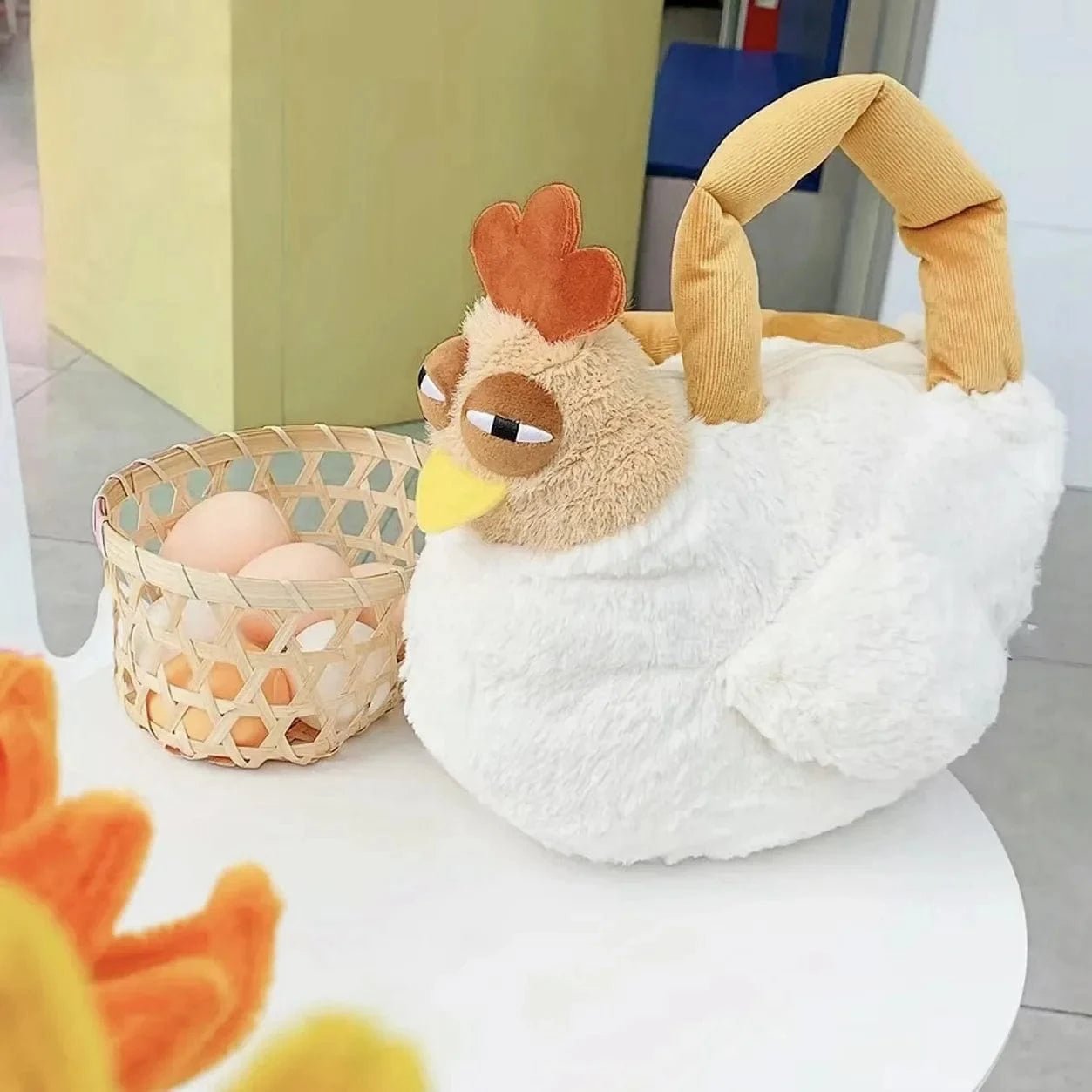 Ge vardagen ett skratt med denna charmiga höna-ryggsäck. Dess uttrycksfulla ansikte och fluffiga kropp ger den en personlig touch som barnen snabbt fäster sig vid. Den fungerar lika bra som en ryggsäck till dagis som en mysig följeslagare på resan. Tillverkad i mjuka material som känns behagliga att bära.