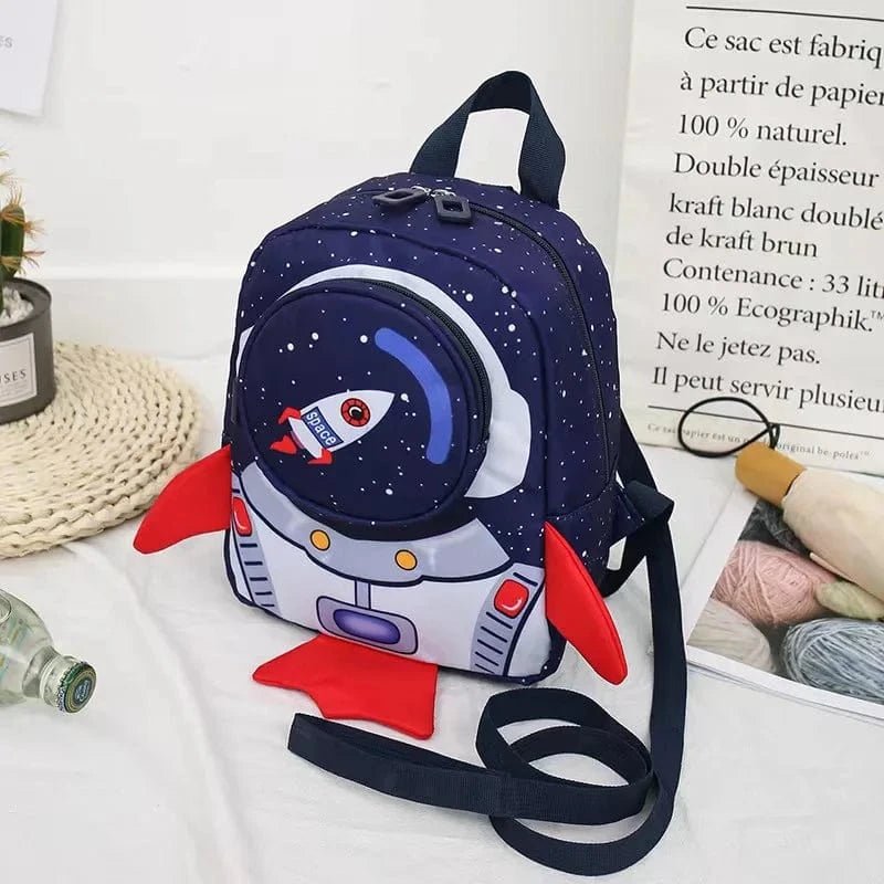 Ryggsäcken har ett rymligt huvudfack och en frontficka för småsaker. Det vattentåliga tyget och de justerbara remmarna säkerställer komfort och långvarig användning för alla små rymdkaptener.
