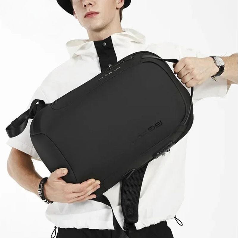 Den integrerade säkerhetslösningen med kodlås och dolda dragkedjor skyddar dina tillhörigheter mot stöld – perfekt för resor och stadsmiljö. Den diskreta, svarta ytan gör att väskan passar lika bra till kostym som till avslappnad stil.