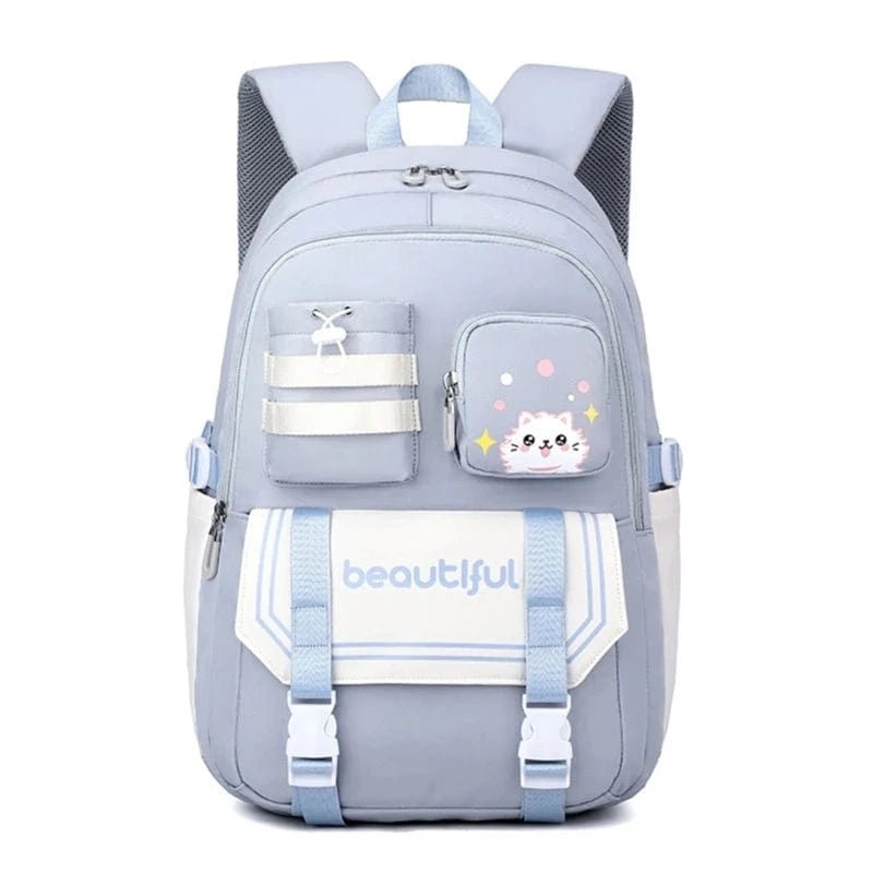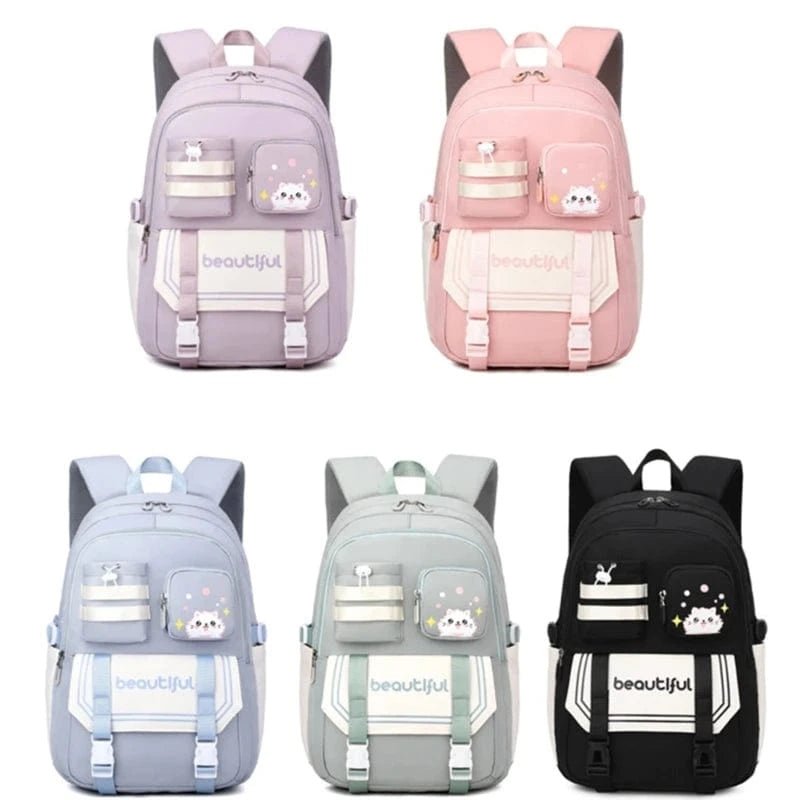 Med sin charmiga design, glada färger och användbara fack är denna ryggsäck både rolig och funktionell. Den stora huvudfickan rymmer skolböcker och pärmar, medan de mindre facken passar perfekt för pennor, snacks och småsaker. En pålitlig följeslagare för varje skoldag.