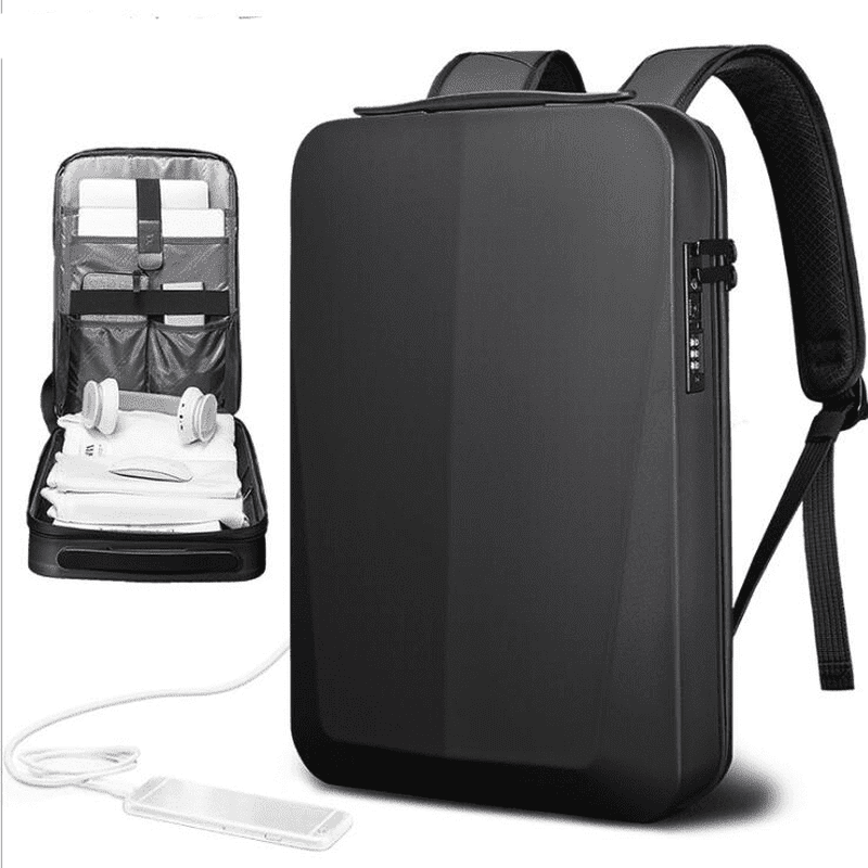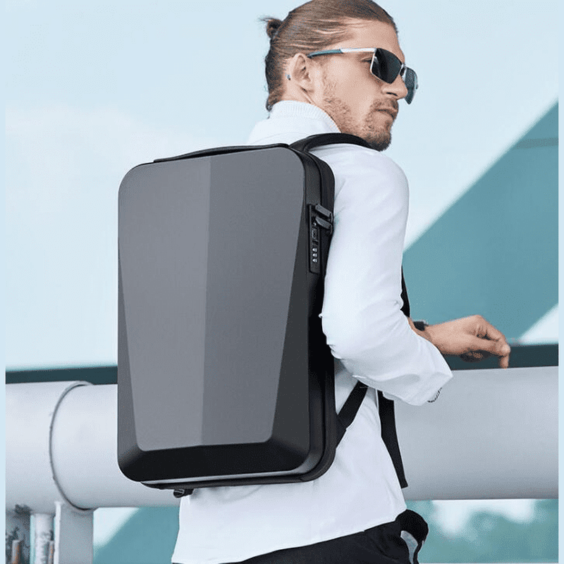 Denna stilrena laptopryggsäck kombinerar modern design med maximal säkerhet och komfort. Det hårda skalet skyddar din laptop mot stötar, medan det inbyggda TSA-låset ger extra säkerhet vid resor. Med ett vadderat fack för laptops upp till 15,6 tum och flera smarta fickor håller du enkelt ordning på dina tillhörigheter. Ryggsäcken har även en inbyggd USB-port för smidig laddning av dina enheter. De ergonomiska, vadderade axelremmarna och det ventilerade ryggstödet ger hög komfort under hela dagen. Perfekt för både affärsresor och daglig pendling.
