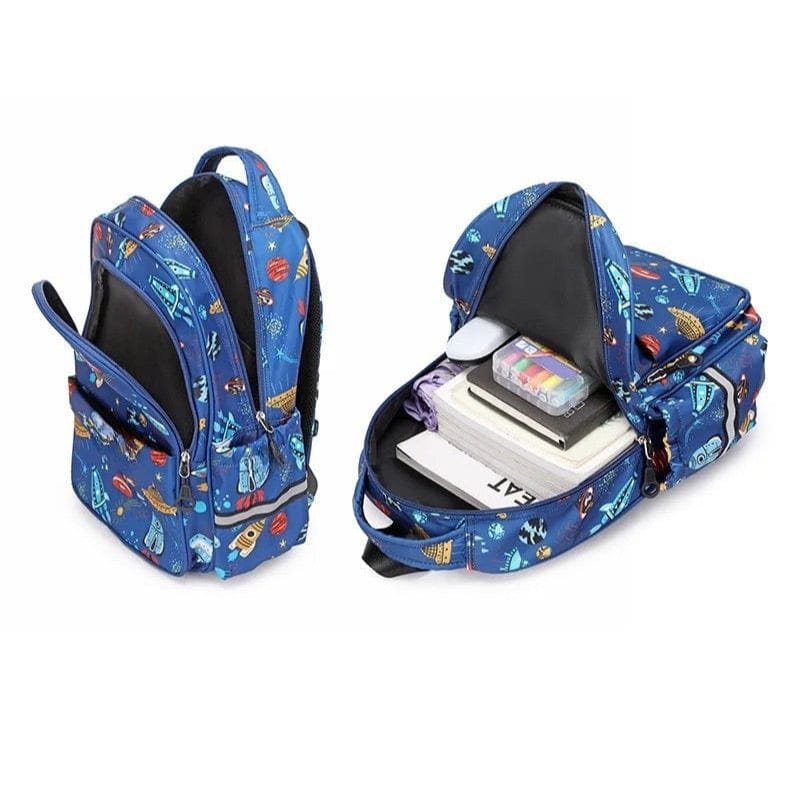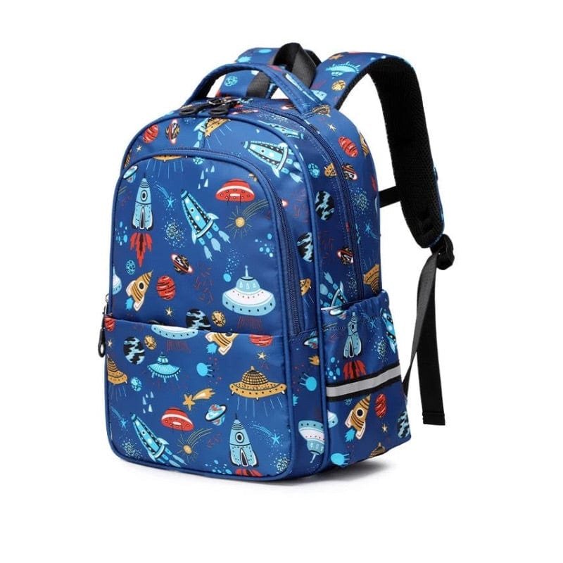 Den unika rymddesignen med raketer, planeter och UFO:n ger ryggsäcken en kreativ och rolig look som snabbt blir barnens favorit. Den passar perfekt för både skolan och utflykter.
