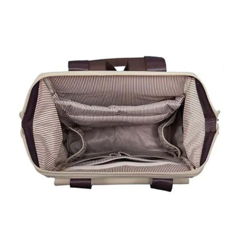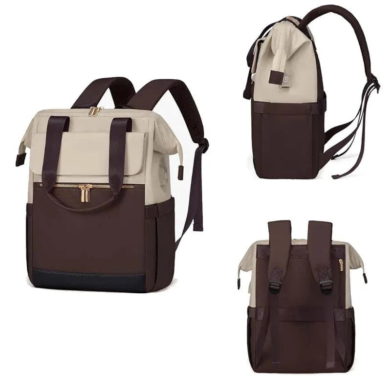 USB-porten på sidan gör att du kan ladda mobilen utan att ta upp powerbanken ur väskan. Du ansluter enkelt din egen powerbank på insidan via ett inbyggt kablage. Kombinera det med en stilren och sofistikerad färgkombination i beige och mörkbrunt – en ryggsäck som är lika praktisk som den är snygg.