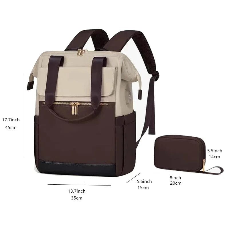 Denna smart designade kabinväska i ryggsäcksmodell är perfekt för dig som reser lätt men ändå vill ha optimal organisering. Med flera innerfack och separat necessär håller du enkelt koll på dina tillhörigheter. USB-port på sidan gör det möjligt att ladda dina enheter smidigt (powerbank ej inkluderad). Väskan är lätt men robust, perfekt som handbagage vid flygresor. Stilsäker kombination i beige och mörkbrunt gör den både elegant och praktisk. Bekväma remmar och rymlig öppning gör den till ett självklart val för organiserade resenärer.