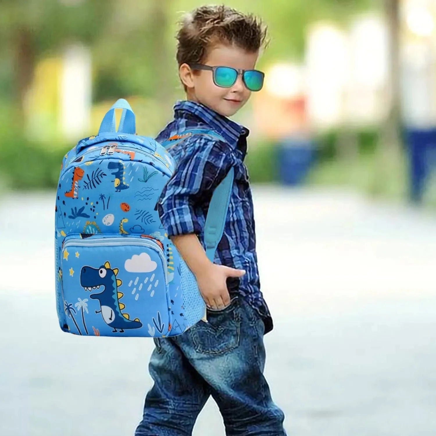 Ge din lilla äventyrare en färgglad start på dagen med denna kartong ryggsäck för förskolan, designad i ett lekfullt blått dinosaurietema. Med sina roliga illustrationer av vulkaner, palmer och glada dinosaurier väcker den både fantasin och upptäckarlusten. Den är lätt, kompakt och bekväm med justerbara remmar och ett mjukt ryggstöd som passar små barn perfekt. Det främre facket gör det enkelt att organisera mindre saker, medan huvudfacket rymmer leksaker, kläder eller mellanmål för dagen. En perfekt ryggsäck för förskola, utflykter eller lek.