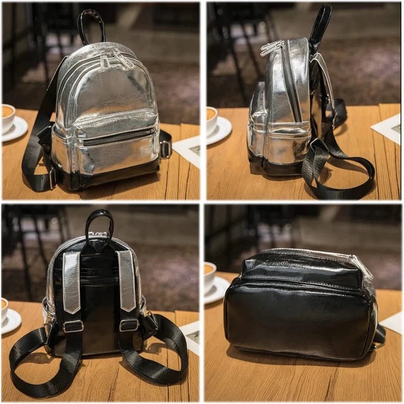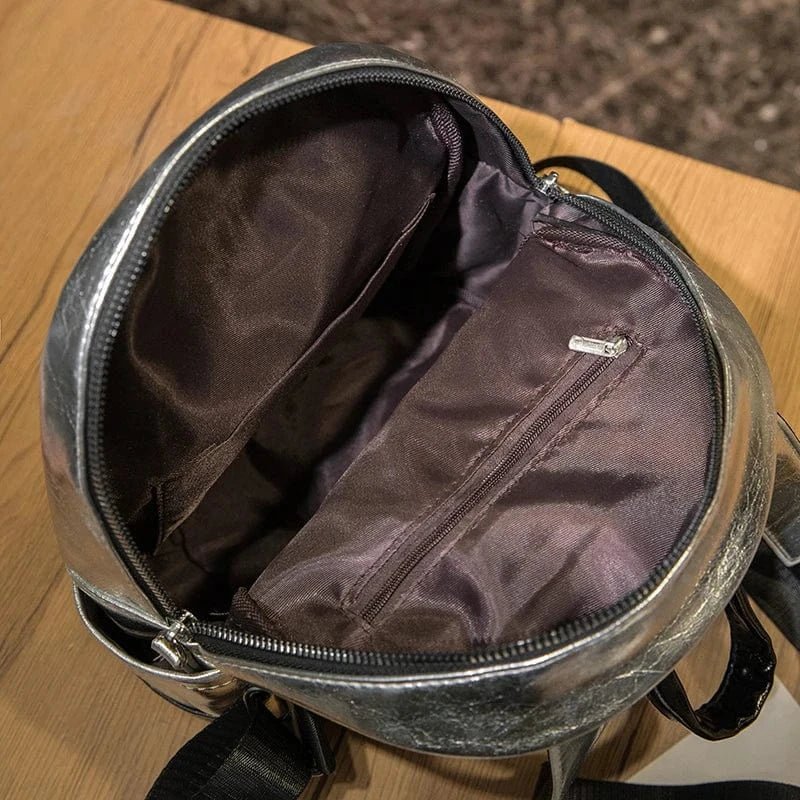Den lackerade ytan i spegelblank silver gör denna ryggsäck till en riktig blickfångare. Perfekt för modemedvetna kvinnor som vill uttrycka sin personlighet med stil.