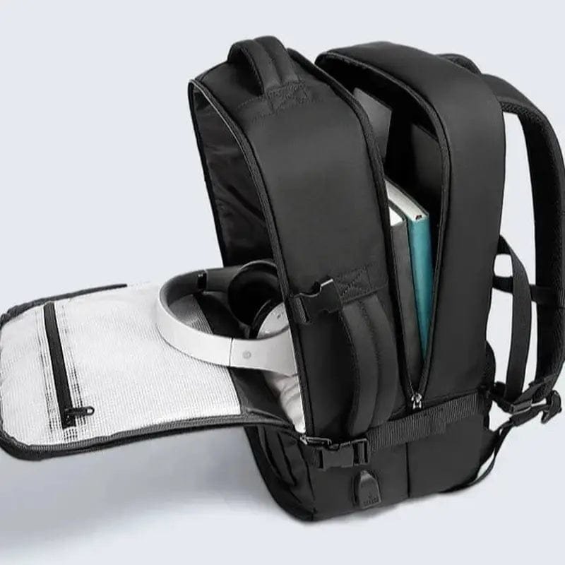Färg: Svart Typ av artikel: Laptopryggsäck / Reseryggsäck Stängningstyp: Dragkedja Material: Oxfordtyg och vattentålig komposit Kapacitet: 25 liter Vikt: 1000 g Mått: 47 × 31 × 20 cm Vattentäthet: Mycket vattentät (klass A++) Kompatibilitet: Upp till 16 tum (laptop)
