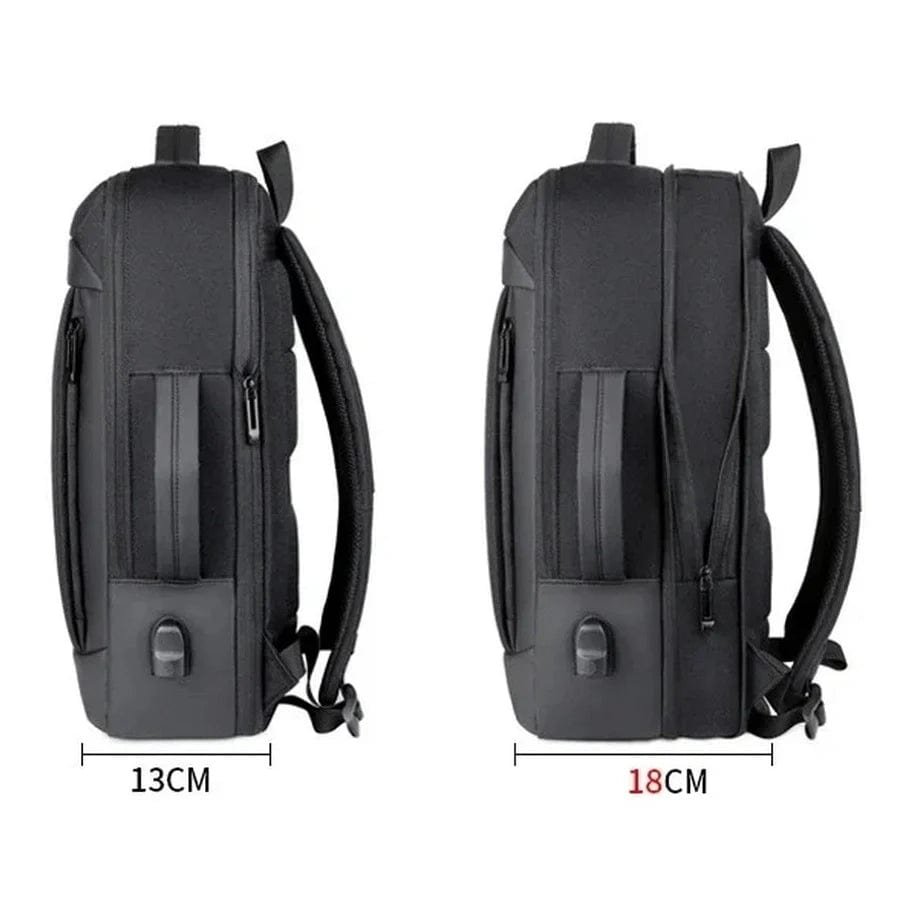 Färg: Svart blank, Svart matt Typ av artikel: Laptopryggsäck Stängningstyp: Dragkedja Material: Nylon och Oxford Kapacitet: 30 liter Vikt: 800 g Mått: 46 × 32 × 13 cm (expanderbar med +5 cm) Vattentäthet: Vattentät (klass A++) Kompatibilitet: Laptop 17