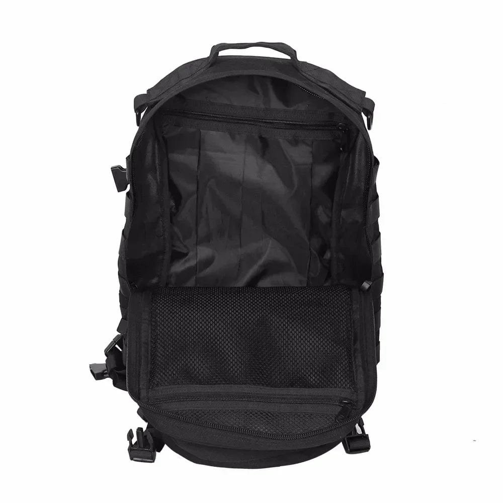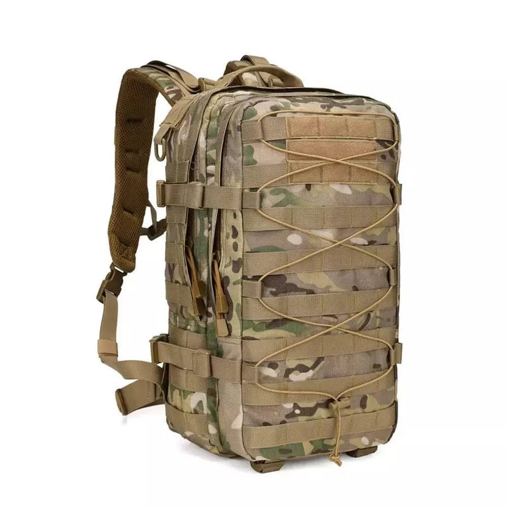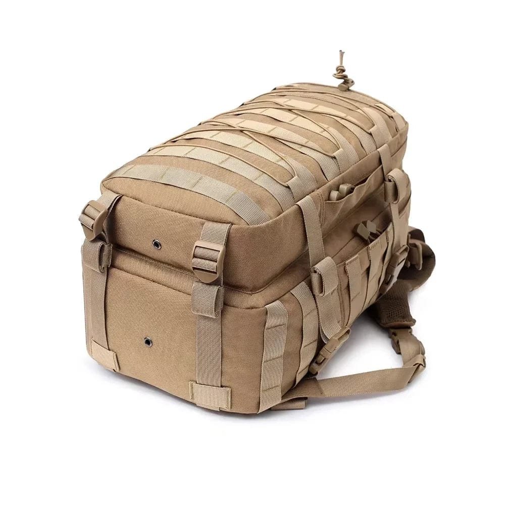 Med MOLLE-fästsystem, förstärkta sömmar och väderbeständigt material, är denna ryggsäck redo för militära uppdrag, vandringar och survival trips. Den rymliga designen rymmer all nödvändig utrustning.