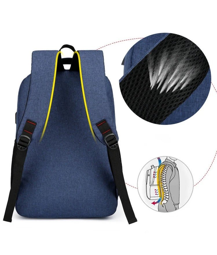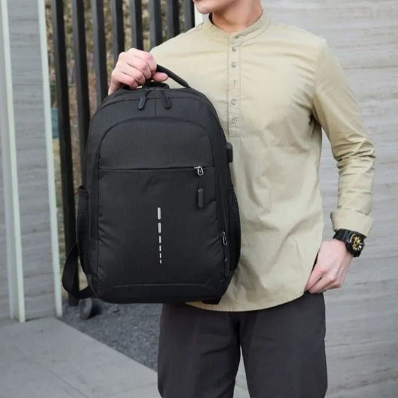 Material: Oxford-tyg Färgval: Grå, Svart, Blå, Röd Storlek: 44 cm x 30 cm x 13 cm Kapacitet: Passar en 15,6″ laptop Funktioner: Vattenavvisande, USB-laddningsport, ergonomiska axelremmar