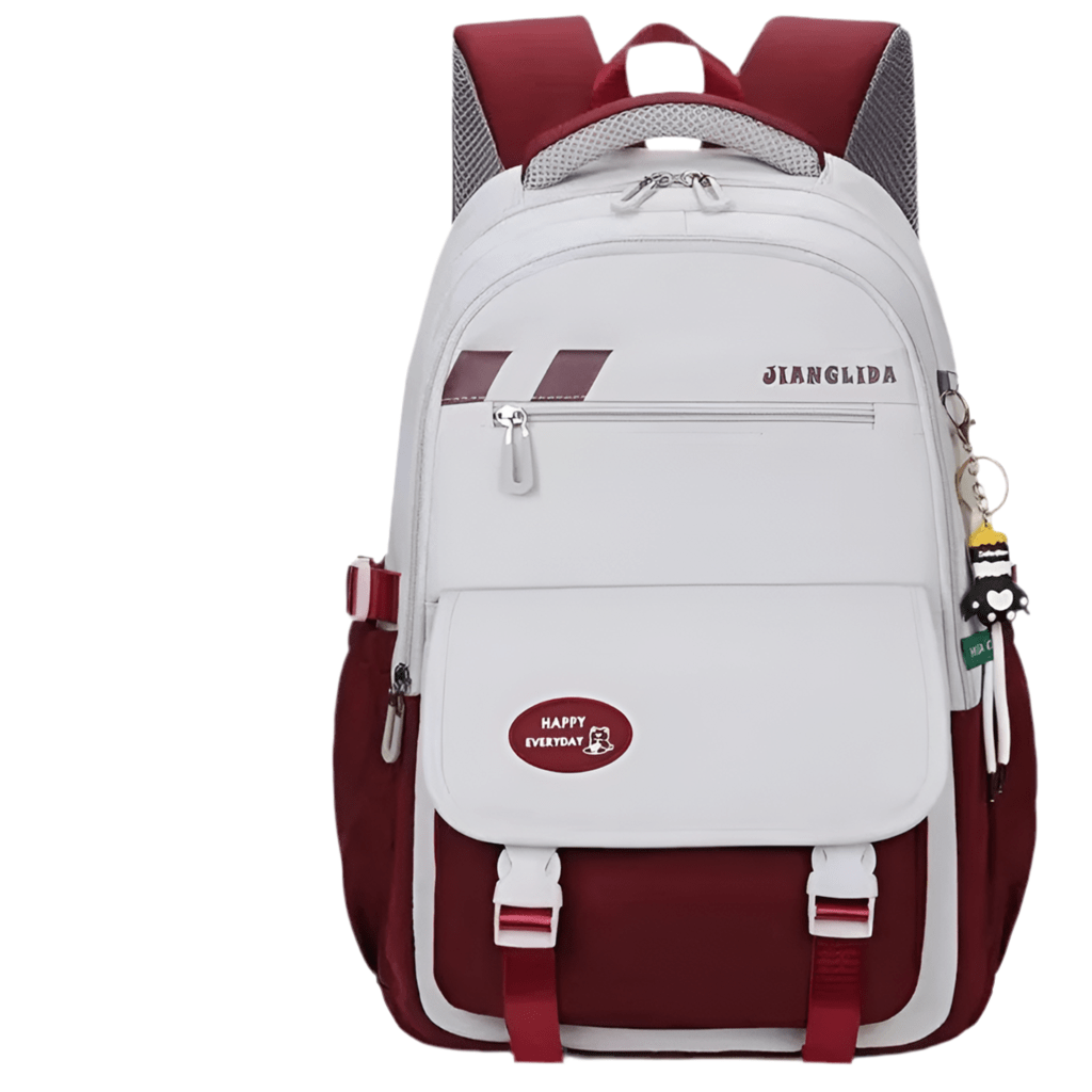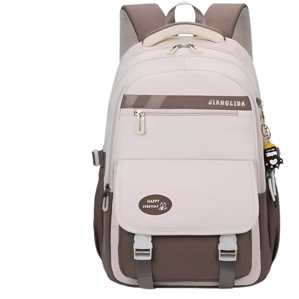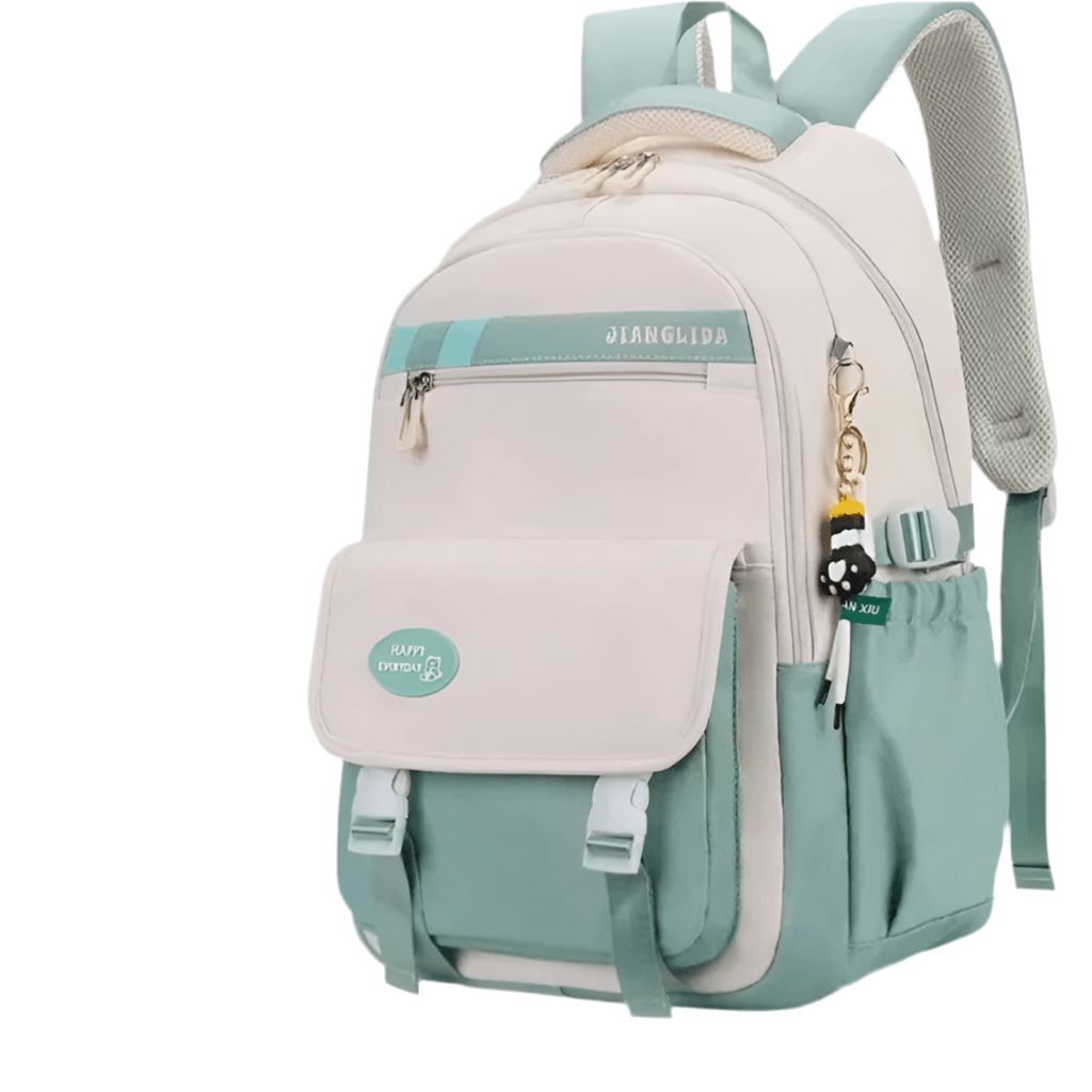 Designad för att rymma böcker, lunchlåda, vattenflaska och tillbehör – utan att kompromissa på stil. Färgkombinationerna är trendiga och neutrala, vilket gör väskan perfekt för både tjejer och killar.
