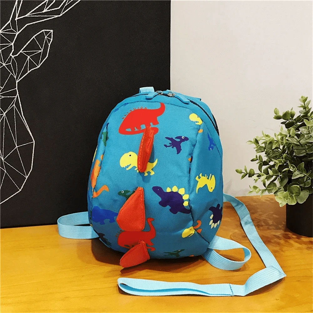 Denna ryggsäck för barn med dinosauriemotiv är både rolig och trygg – tack vare det avtagbara säkerhetskopplet som hjälper föräldrar att hålla koll på nyfikna små äventyrare. Väskan har ett färgglatt print med dinosaurier och mjuka 3D-taggar baktill som ger den en lekfull känsla. Den är tillverkad i slitstarkt material och har justerbara axelremmar som passar små ryggar perfekt. Med ett lagom stort fack får barnet plats med napp, snacks eller favoritleksak. En praktisk och söt lösning för aktiva småbarn.