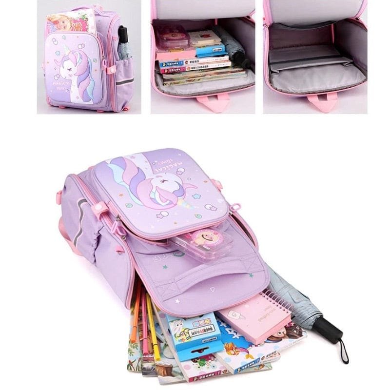 Färg: Bla, Rosa, Lila Typ av artikel: Skolväska (Ryggsäck) Typ av stängning: Dragkedja Material: Polyester (Huvudmaterial och Materialkomposition) Vikt: 0,85 kg Dimensioner: 37 cm x 30 cm x 18 cm