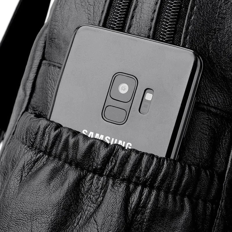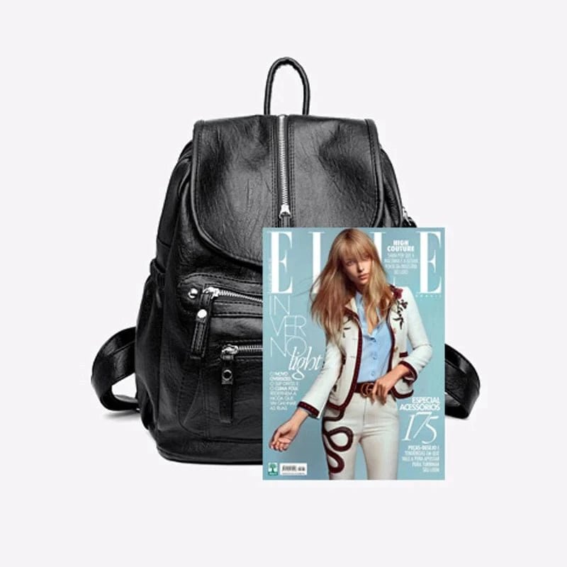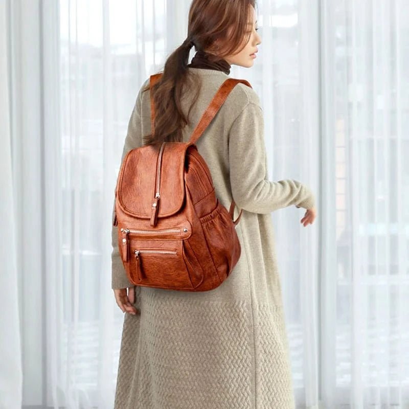 Den brunfärgade finishen i skinnimitation ger ett klassiskt och sofistikerat intryck. Med tre framfickor och en dekorativ dragkedja på locket får du både stil och funktion i ett. Passar utmärkt till både avslappnad och uppklädd stil.