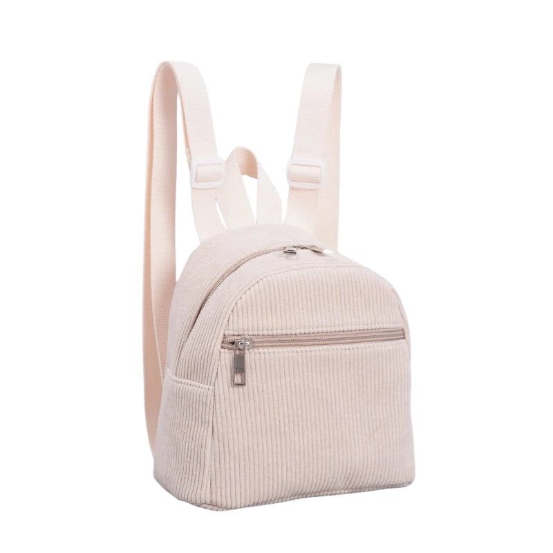 Denna stilrena tygryggsäck för dam kombinerar enkelhet med funktionalitet och är ett perfekt val för vardagens alla behov. Tillverkad i ett mjukt men slitstarkt manchestertyg med en neutral beige ton som passar till allt. Den kompakta men rymliga designen rymmer både plånbok, mobil, nycklar och andra småsaker. En praktisk ytterficka med dragkedja ger snabb åtkomst till det viktigaste, medan justerbara axelremmar ger bekväm passform. Idealisk för både promenader, ärenden eller som stilfullt komplement till en avslappnad outfit.