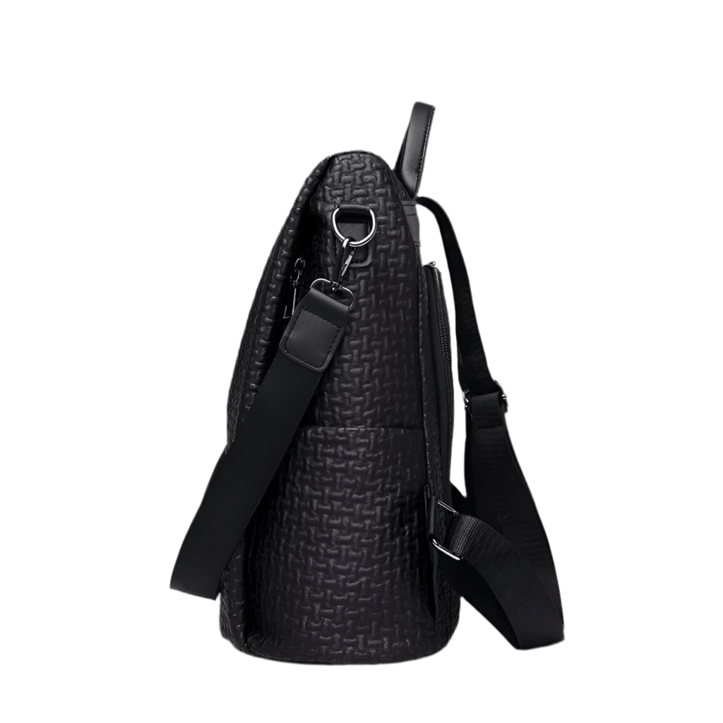 Denna damryggsäck kombinerar en stilren design med smart funktionalitet, perfekt för både arbete och vardag. Tillverkad av högkvalitativt syntetiskt läder, ger den ett lyxigt utseende samtidigt som den är slitstark och lättskött. Säkra dragkedjor och en dold ficka på baksidan gör den idealisk för att skydda dina värdesaker. Med justerbara remmar och en ergonomisk passform, är den bekväm att bära hela dagen. Perfekt för dig som vill ha en snygg och praktisk väska för jobb, shopping och resor!