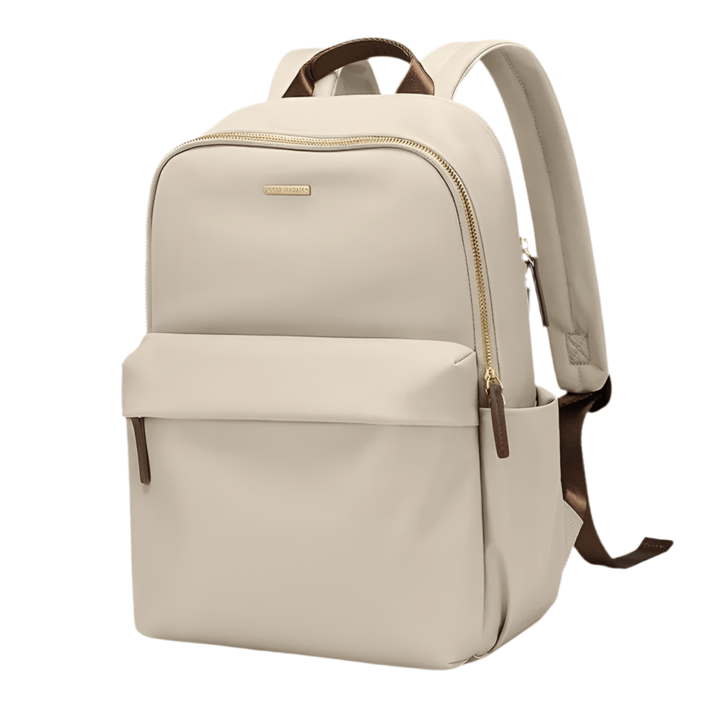 Denna stilrena ryggsäck är designad för kvinnor som vill kombinera elegans och funktionalitet i vardagen. Tillverkad i vattenavvisande material med mjuk struktur och detaljer i konstläder, erbjuder den ett säkert och vadderat fack för en 14-tums laptop. Med flera innerfickor, ytterfack med dragkedja och bekväma axelremmar, är den perfekt för både arbete, skola och fritid. Den neutrala färgen gör att den passar till alla outfits och sammanhang, från kontorsmöten till helgutflykter.