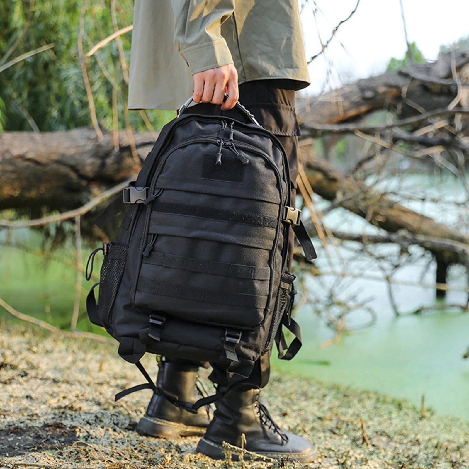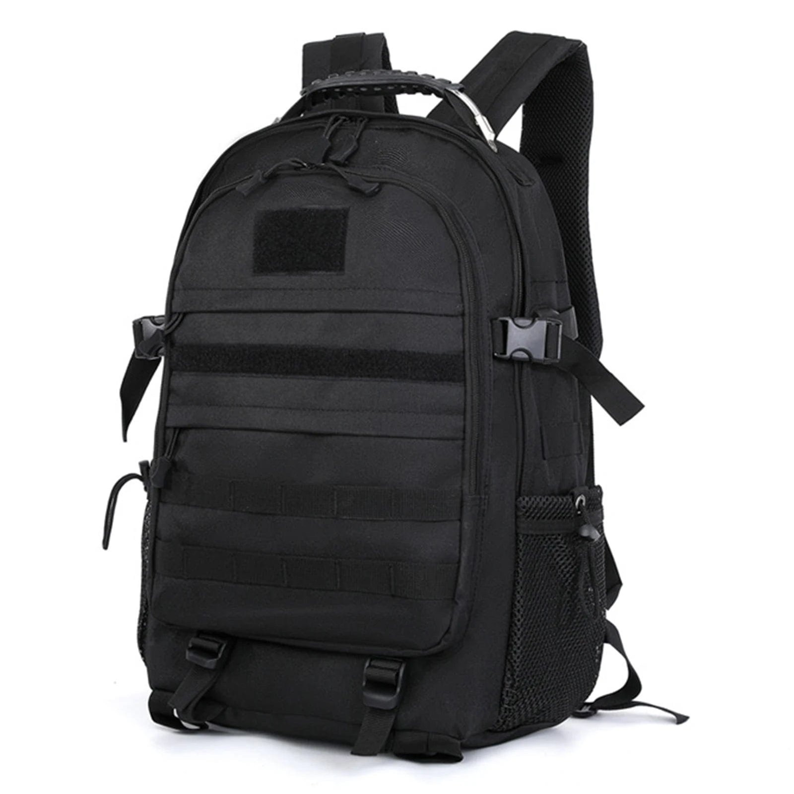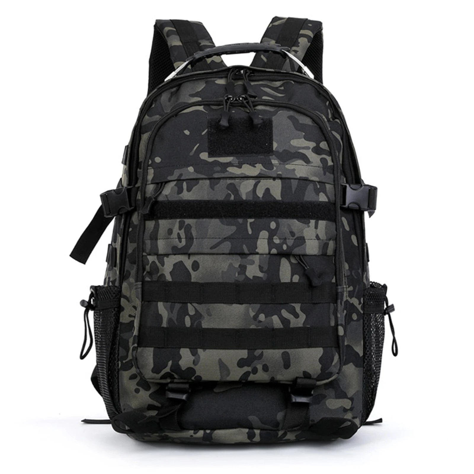 Denna svarta militär ryggsäck är designad för maximal hållbarhet och funktionalitet. Tillverkad av vattentåligt och slitstarkt material, klarar den tuffa förhållanden i alla miljöer. Med MOLLE-fästsystemet kan du enkelt anpassa och fästa extra utrustning. De ergonomiska, vadderade axelremmarna och den ventilerade ryggpanelen ger hög komfort även under långa uppdrag. Med flera fack och kompressionsremmar kan du organisera din packning optimalt. Perfekt för militära uppdrag, jakt, överlevnad, vandring och camping.