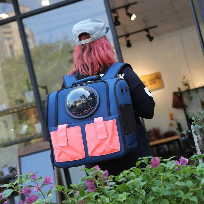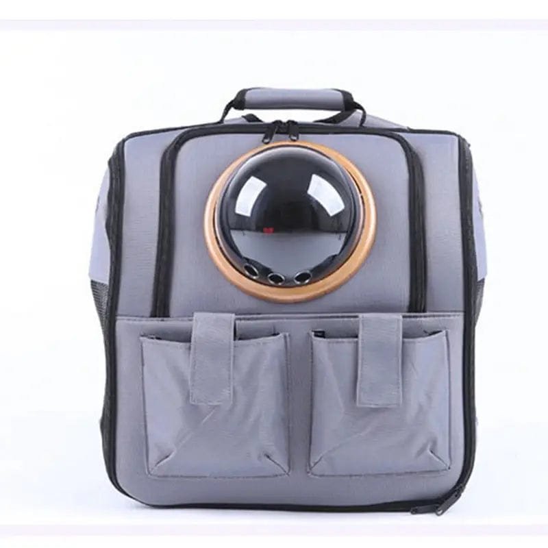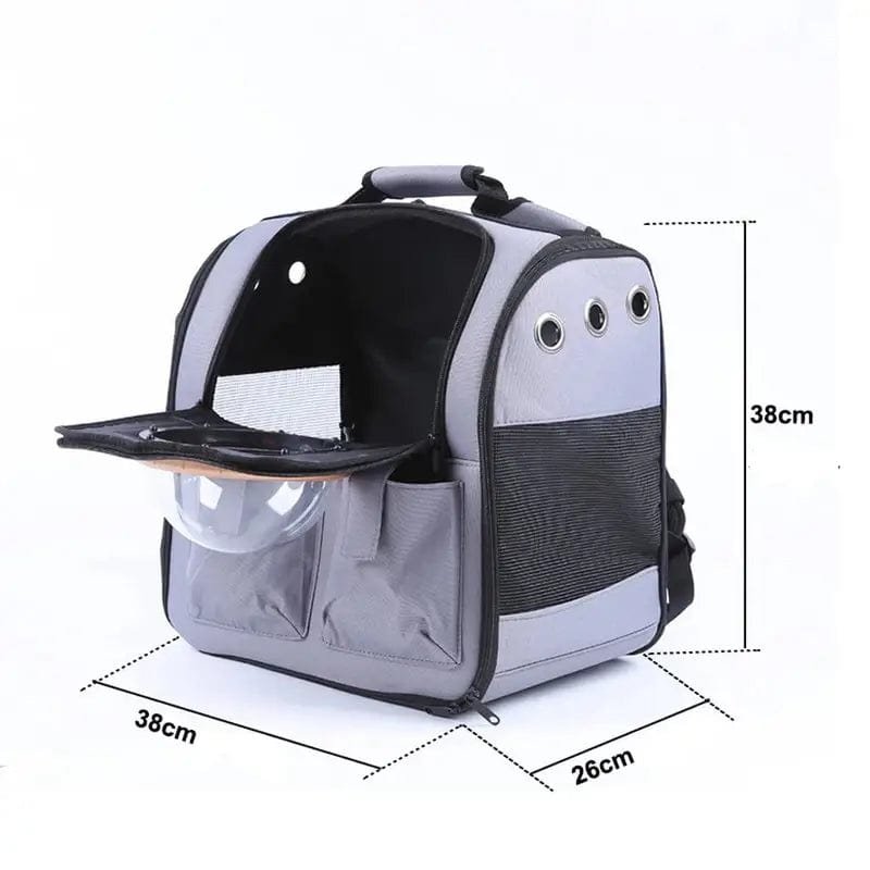 Denna ryggsäck för katttransport är den perfekta lösningen för att ta med din katt på resor eller utflykter. Den är utrustad med ett halvsfäriskt bubbelfönster, vilket ger din katt en trygg utsikt. Tack vare ventilationshål och nätpaneler får din katt alltid frisk luft. De flerväggiga fickorna ger extra förvaring för godsaker eller tillbehör. Ryggsäcken har bekväma axelremmar och ett robust handtag, vilket gör den enkel att bära på olika sätt. Perfekt för veterinärbesök, resor och promenader!