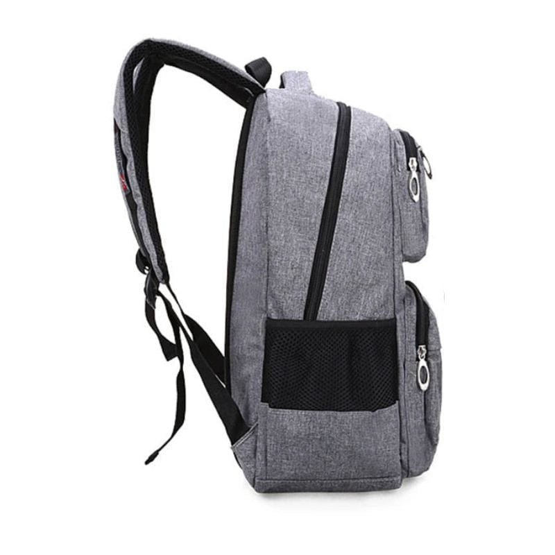 Färg: Grå, Svart, Bla, Rod Typ av artikel: Skolryggsäck (mjuk) Stängningstyp: Dragkedja Material: Polyester (huvudmaterial och foder) Kapacitet: 35 liter Mått: 43 × 30 × 16 cm Kompatibilitet: Fack för dator