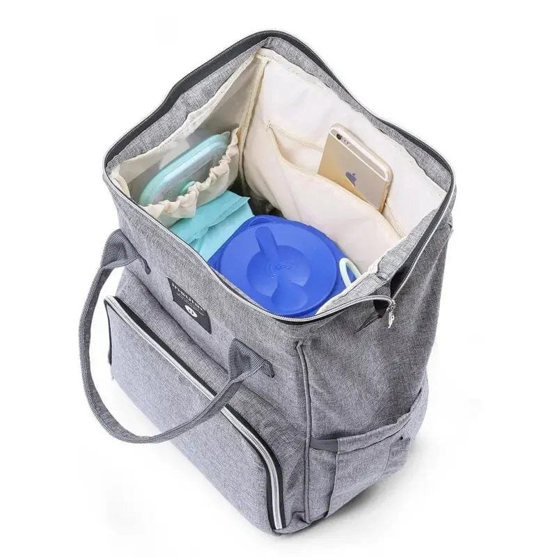 Den kompakta designen innehåller flera fack för nappflaskor, blöjor och små tillbehör, vilket gör det enkelt att hålla ordning.