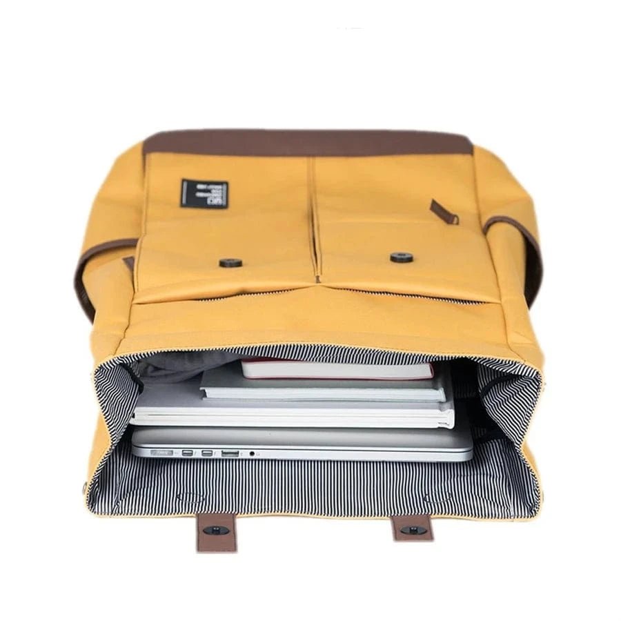 Upptäck en elegant och praktisk ryggsäck för kvinnor med plats för laptop – perfekt för både vardag och arbete. Med sin stilrena design i senapsgult och bruna detaljer blir den snabbt en favorit i garderoben. Det rymliga huvudfacket har plats för en laptop upp till 15,6 tum, med extra fack för laddare, mobil och andra tillhörigheter. De vadderade axelremmarna och bärhandtaget ger hög komfort. Tillverkad i slitstark canvas med vattenavvisande botten – en perfekt kombination av stil och funktionalitet för kvinnor på språng.