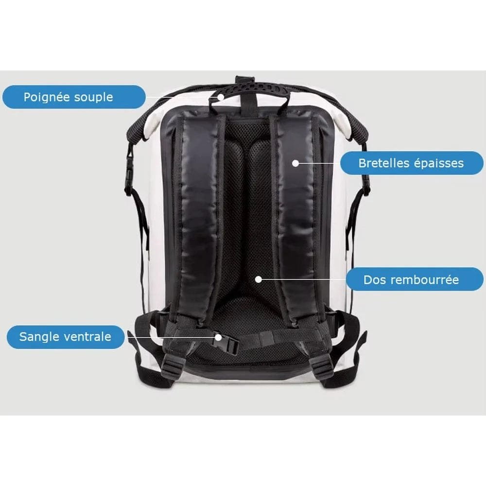 Tillverkad i slitstarkt och vattentätt PVC-material, skyddar denna ryggsäck dina kläder, elektronik och andra värdesaker från väta. Perfekt för alla typer av utomhusaktiviteter.