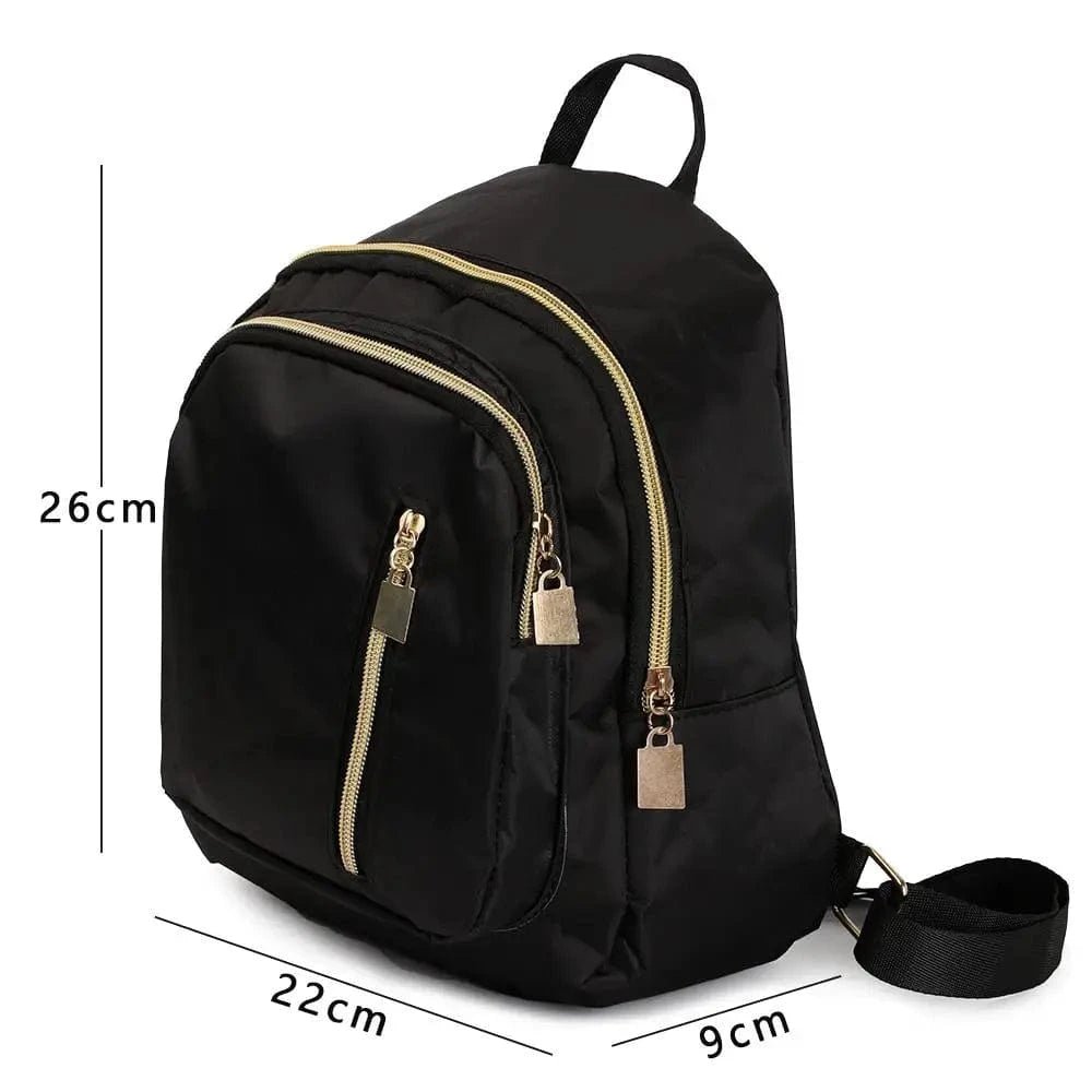 Färg: Svart Artikeltyp: Ryggsäck Stängningstyp: Dragkedja (baserat på bilden) Material: Oxford (yttertyg), Polyester (foder) Kapacitet: Uppskattas till under 15 liter Dimensioner: 26 x 22 x 9 cm