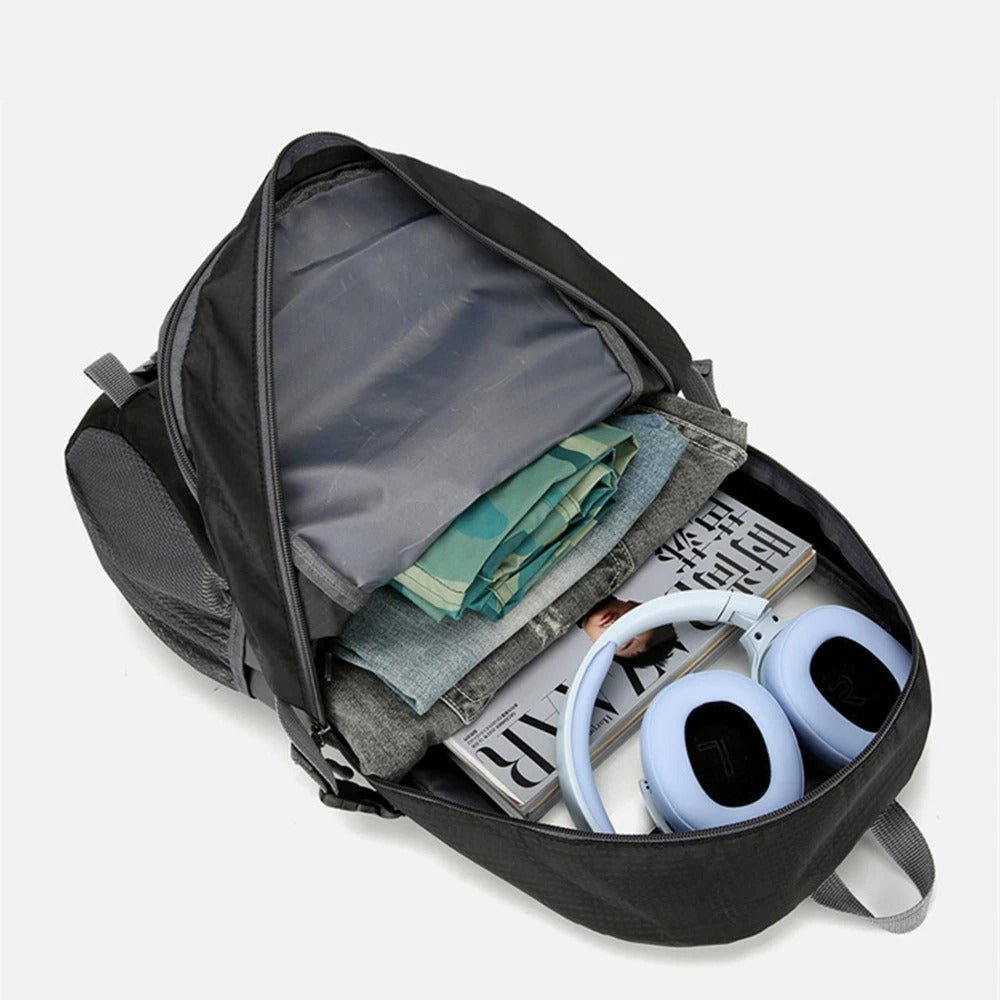 Volym: ca 28–32 L • lastkapacitet ≈ 15 kg Mått: 52 × 32 × 16 cm • vikt ≈ 0,43 kg Material: Rivtålig, vatten­avvisande nylon Fickor: Frontfack med dragkedja • 2 sidonät • innerfack för värdesaker Bärkomfort: Ergonomiska axel­remmar & andnings­mesh i ryggpanel Färger: Svart | Grön | Orange | Röd