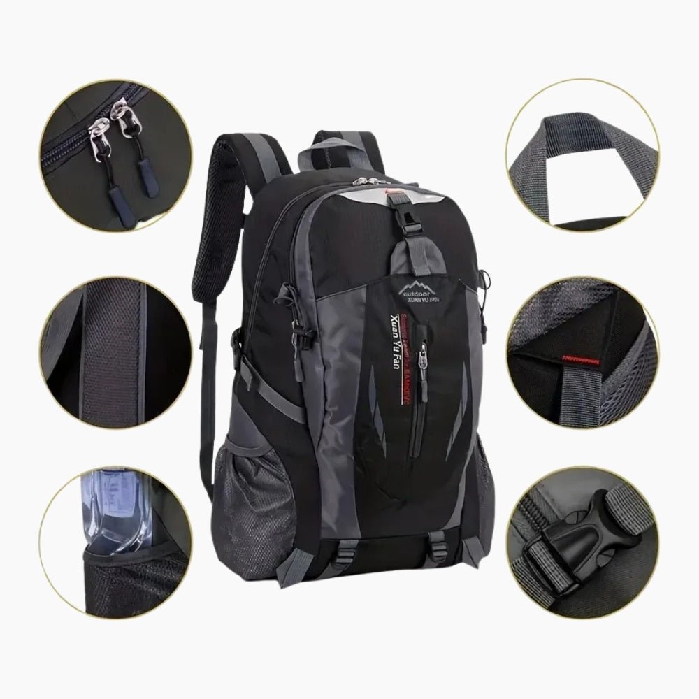 Tack vare andningsaktiva rygg- och axelpartier samt justerbara remmar sitter väskan stabilt utan att skava. Nätfickor på sidorna ger snabb åtkomst till vattenflaskor.